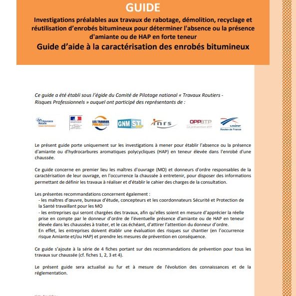 Tout chantier routier doit au préalable être soumis à un diagnostic amiante et HAP enrobés et ceci afin de protéger à la fois les travailleurs et l'environnement.